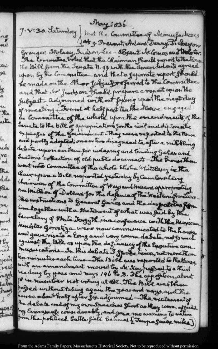 View full, authoritative transcriptions with page images of the diaries at John Quincy Adams Digital Diary part of the Primary Source Cooperative at the MHS.