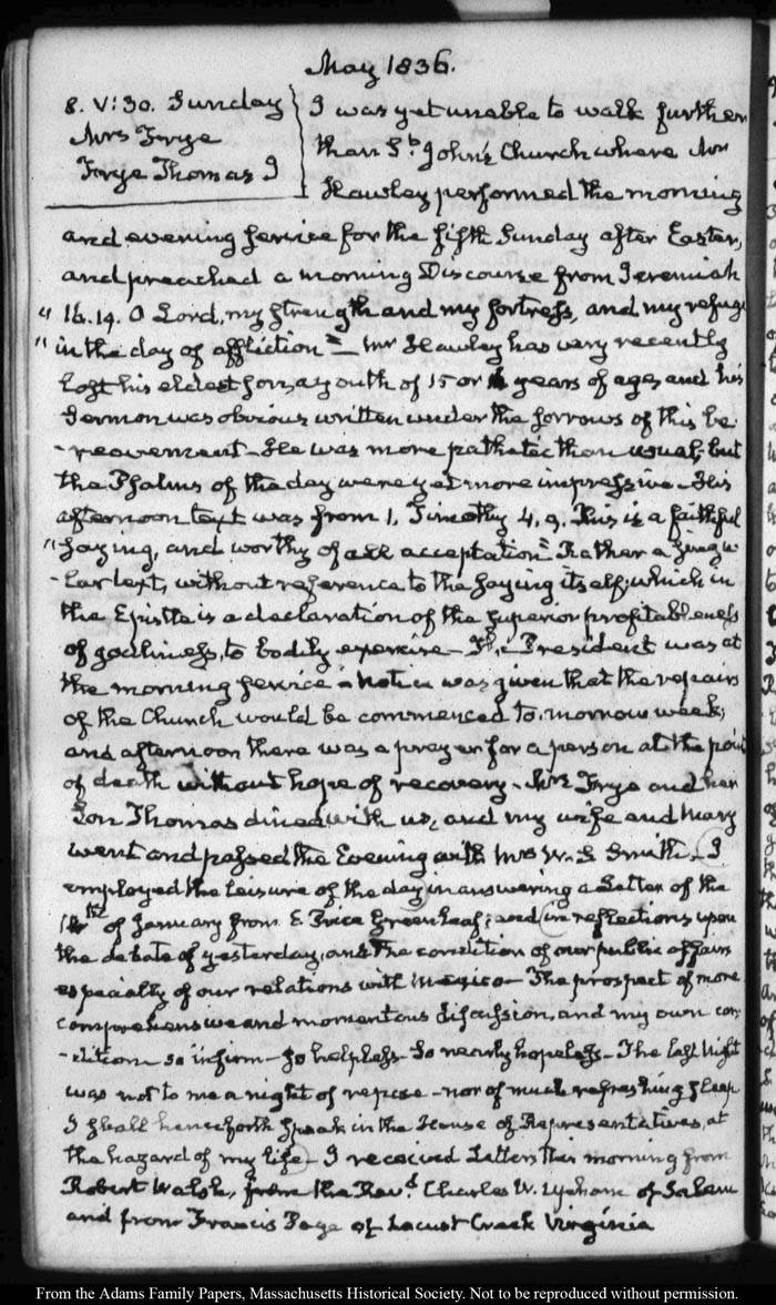 View full, authoritative transcriptions with page images of the diaries at John Quincy Adams Digital Diary part of the Primary Source Cooperative at the MHS.