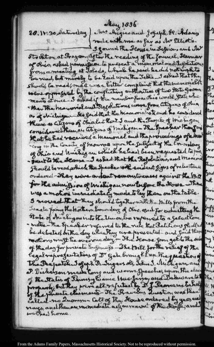 View full, authoritative transcriptions with page images of the diaries at John Quincy Adams Digital Diary part of the Primary Source Cooperative at the MHS.
