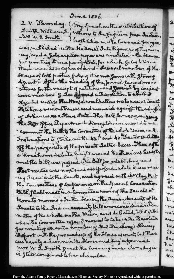 View full, authoritative transcriptions with page images of the diaries at John Quincy Adams Digital Diary part of the Primary Source Cooperative at the MHS.