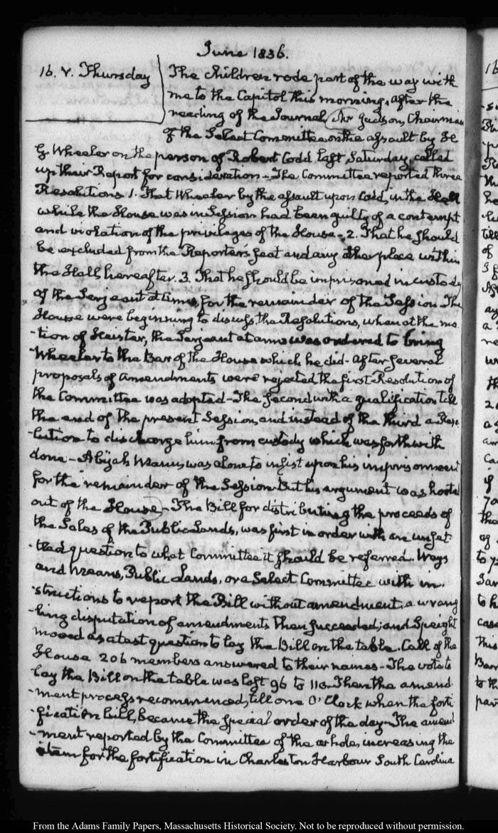 View full, authoritative transcriptions with page images of the diaries at John Quincy Adams Digital Diary part of the Primary Source Cooperative at the MHS.