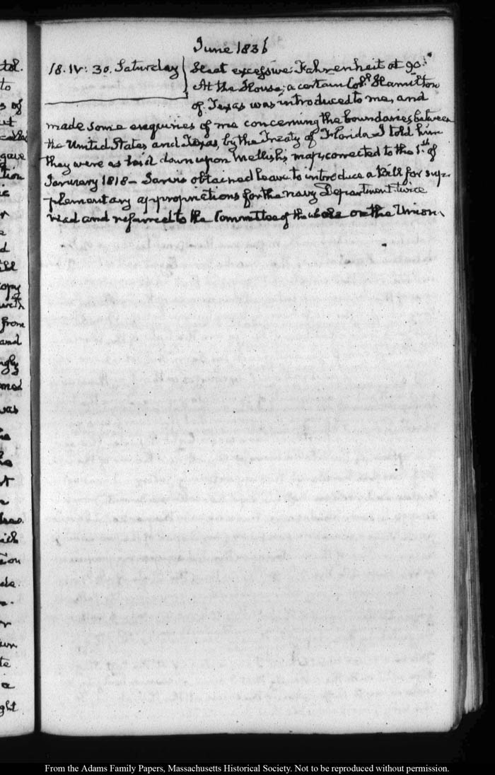 View full, authoritative transcriptions with page images of the diaries at John Quincy Adams Digital Diary part of the Primary Source Cooperative at the MHS.