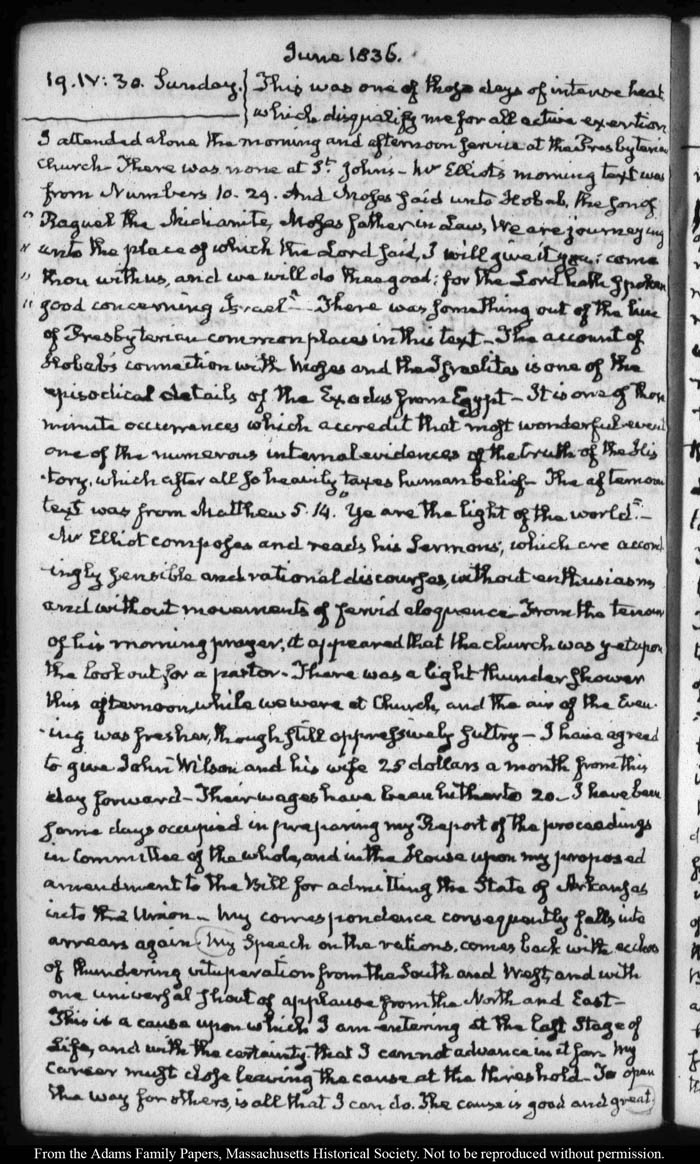 View full, authoritative transcriptions with page images of the diaries at John Quincy Adams Digital Diary part of the Primary Source Cooperative at the MHS.