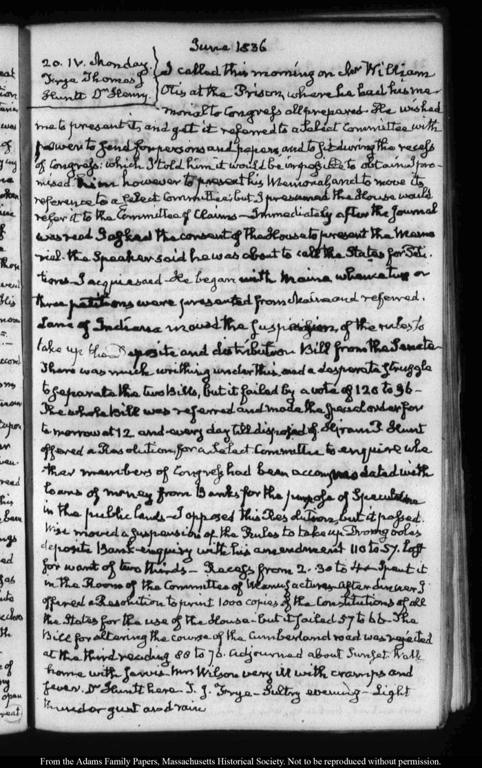 View full, authoritative transcriptions with page images of the diaries at John Quincy Adams Digital Diary part of the Primary Source Cooperative at the MHS.