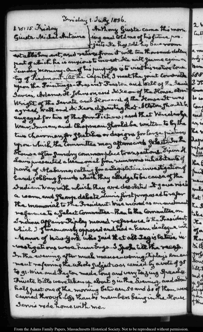 View full, authoritative transcriptions with page images of the diaries at John Quincy Adams Digital Diary part of the Primary Source Cooperative at the MHS.