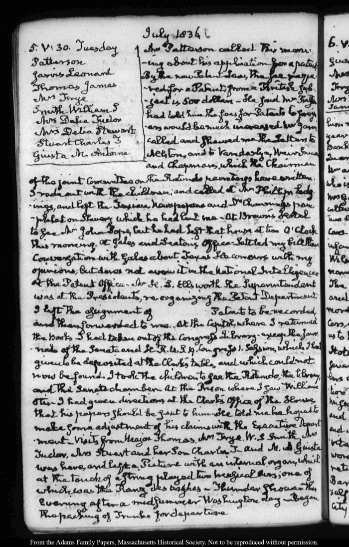 View full, authoritative transcriptions with page images of the diaries at John Quincy Adams Digital Diary part of the Primary Source Cooperative at the MHS.