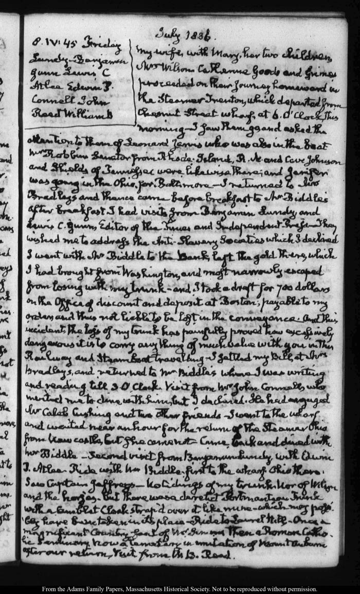 View full, authoritative transcriptions with page images of the diaries at John Quincy Adams Digital Diary part of the Primary Source Cooperative at the MHS.