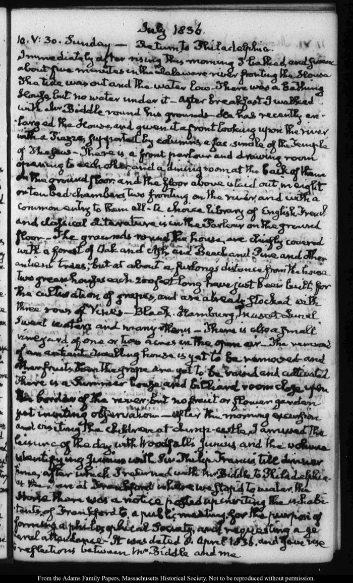 View full, authoritative transcriptions with page images of the diaries at John Quincy Adams Digital Diary part of the Primary Source Cooperative at the MHS.