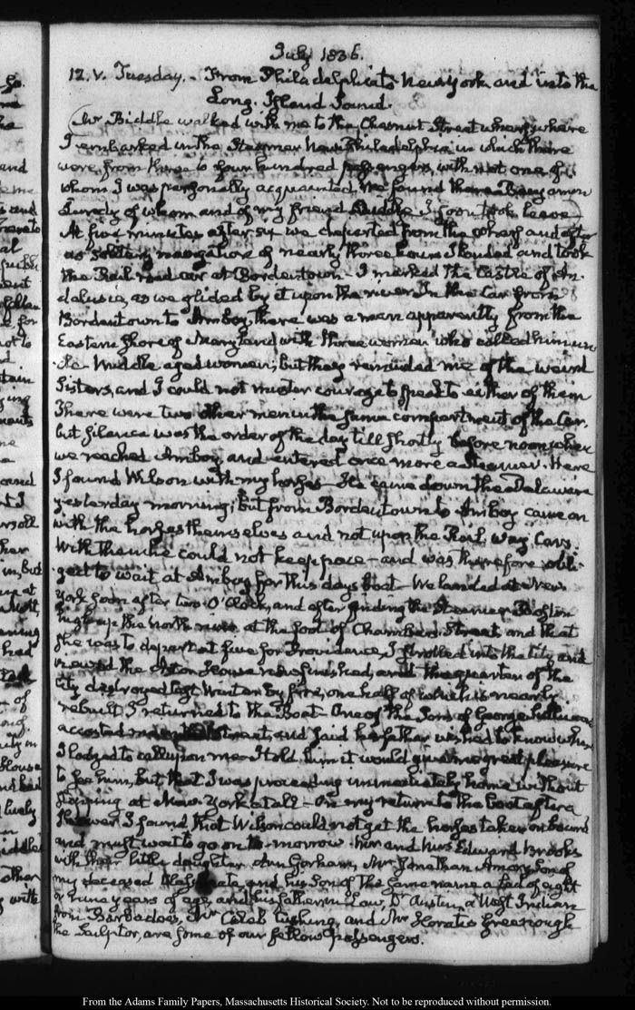 View full, authoritative transcriptions with page images of the diaries at John Quincy Adams Digital Diary part of the Primary Source Cooperative at the MHS.
