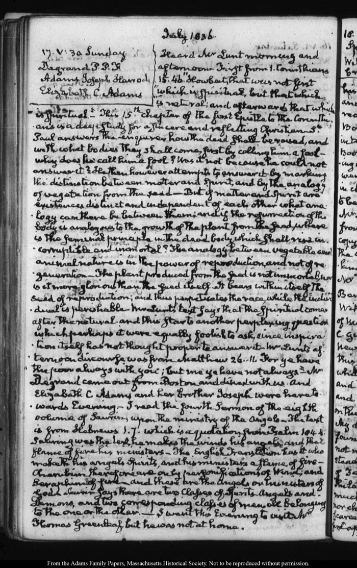 View full, authoritative transcriptions with page images of the diaries at John Quincy Adams Digital Diary part of the Primary Source Cooperative at the MHS.