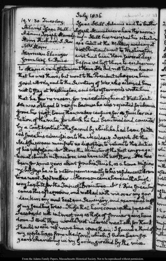 View full, authoritative transcriptions with page images of the diaries at John Quincy Adams Digital Diary part of the Primary Source Cooperative at the MHS.