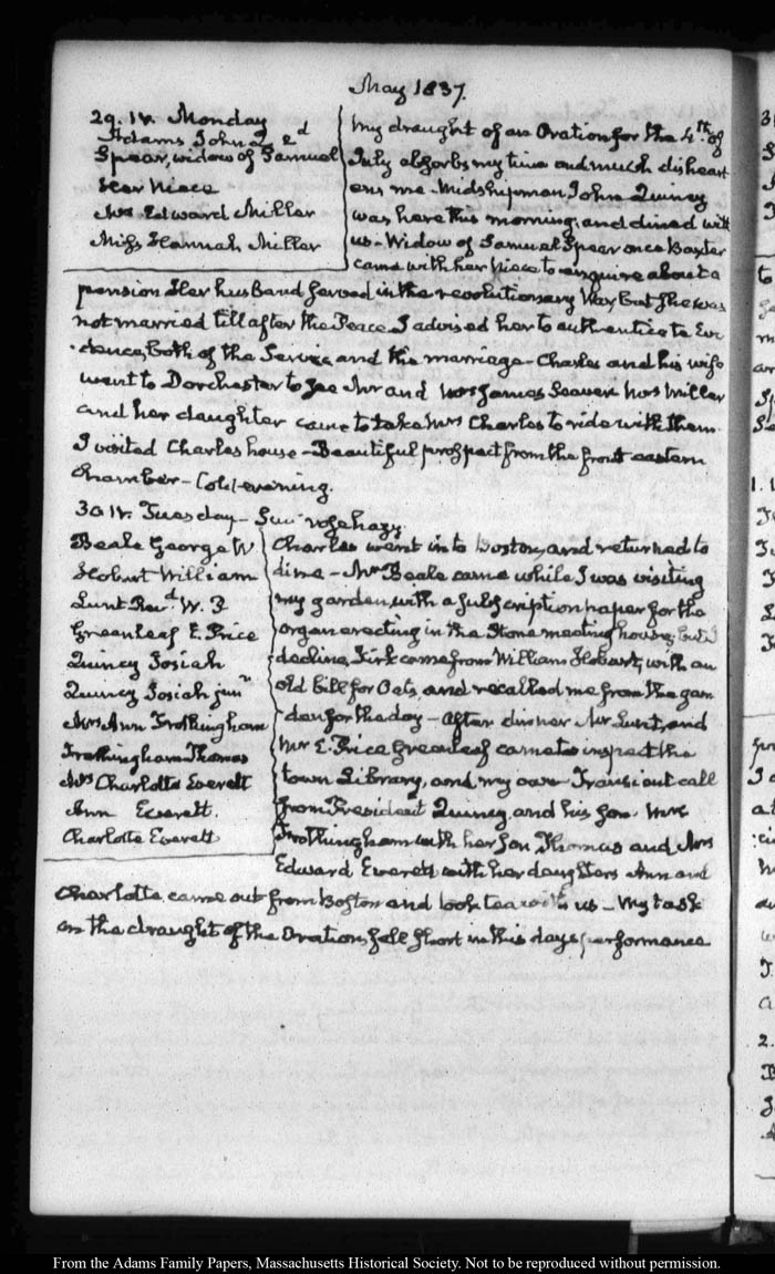 View full, authoritative transcriptions with page images of the diaries at John Quincy Adams Digital Diary part of the Primary Source Cooperative at the MHS.