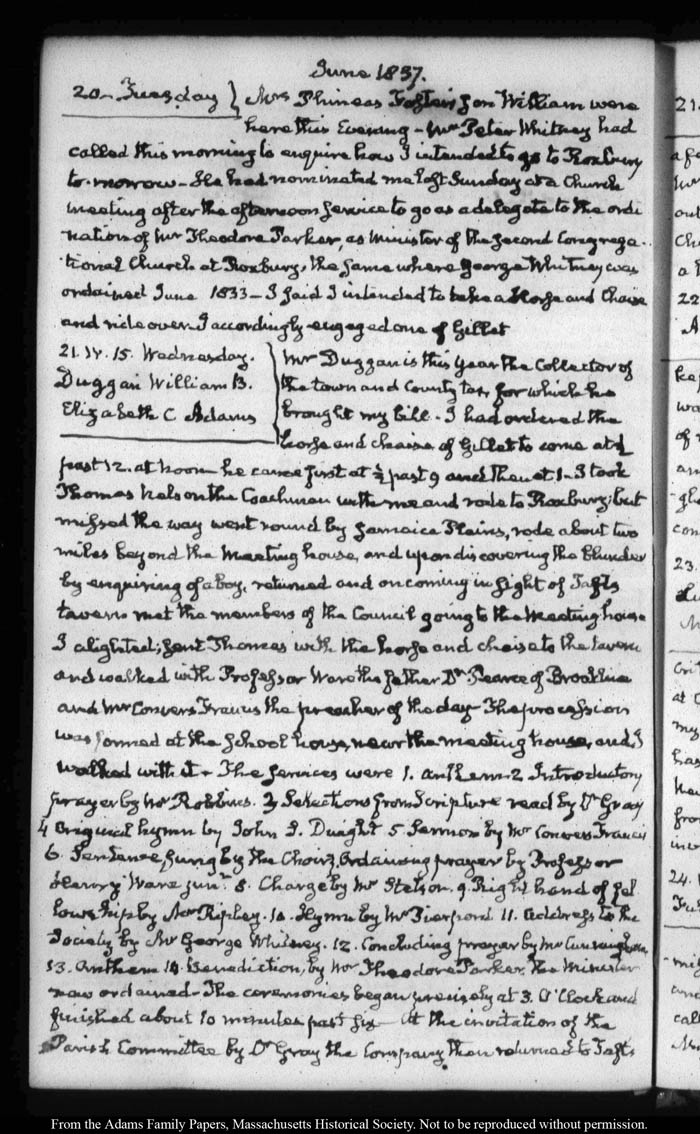 View full, authoritative transcriptions with page images of the diaries at John Quincy Adams Digital Diary part of the Primary Source Cooperative at the MHS.