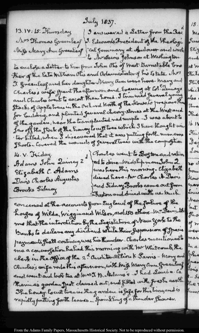 View full, authoritative transcriptions with page images of the diaries at John Quincy Adams Digital Diary part of the Primary Source Cooperative at the MHS.