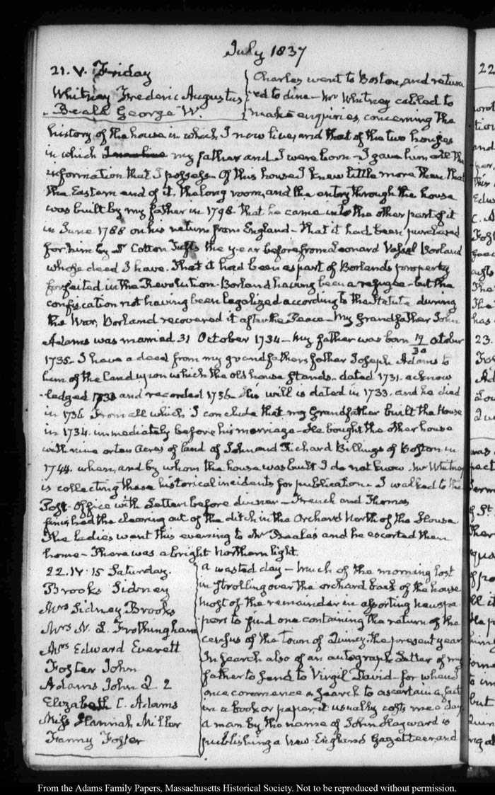 View full, authoritative transcriptions with page images of the diaries at John Quincy Adams Digital Diary part of the Primary Source Cooperative at the MHS.