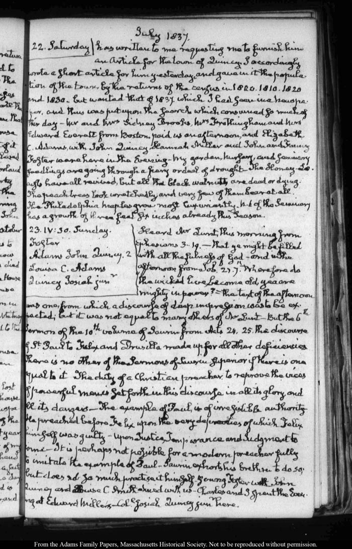 View full, authoritative transcriptions with page images of the diaries at John Quincy Adams Digital Diary part of the Primary Source Cooperative at the MHS.
