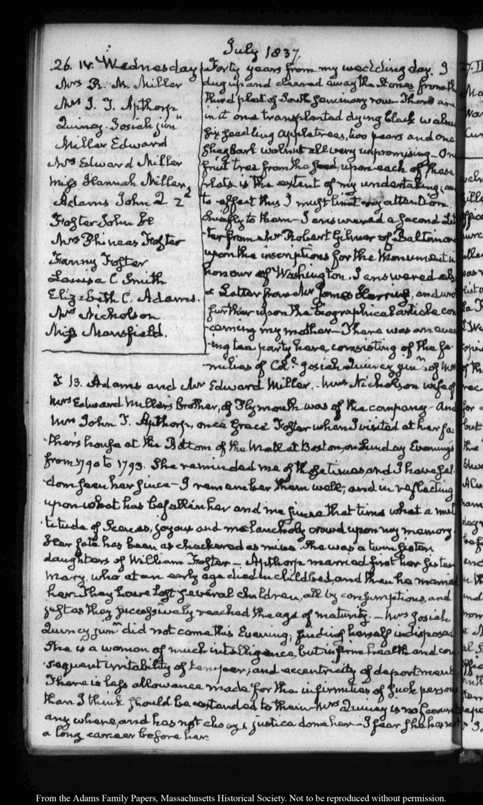 View full, authoritative transcriptions with page images of the diaries at John Quincy Adams Digital Diary part of the Primary Source Cooperative at the MHS.