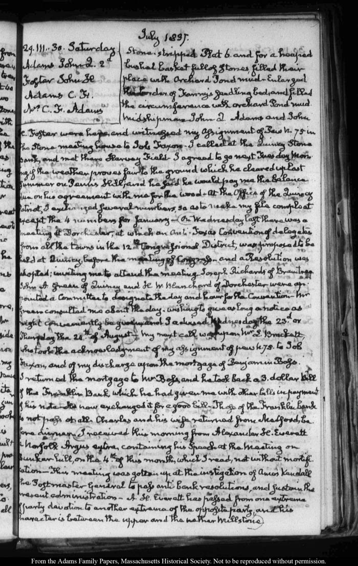 View full, authoritative transcriptions with page images of the diaries at John Quincy Adams Digital Diary part of the Primary Source Cooperative at the MHS.