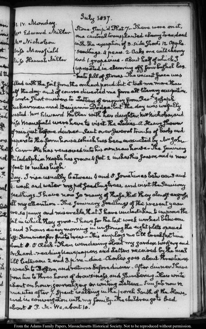 View full, authoritative transcriptions with page images of the diaries at John Quincy Adams Digital Diary part of the Primary Source Cooperative at the MHS.