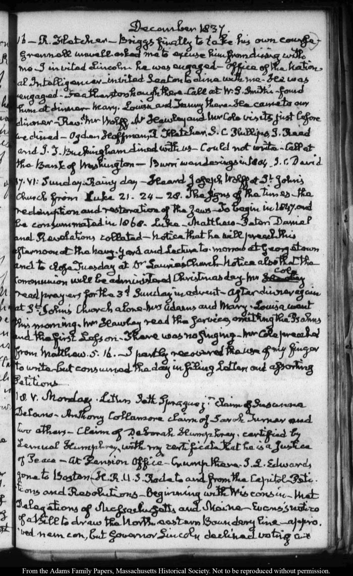 View full, authoritative transcriptions with page images of the diaries at John Quincy Adams Digital Diary part of the Primary Source Cooperative at the MHS.