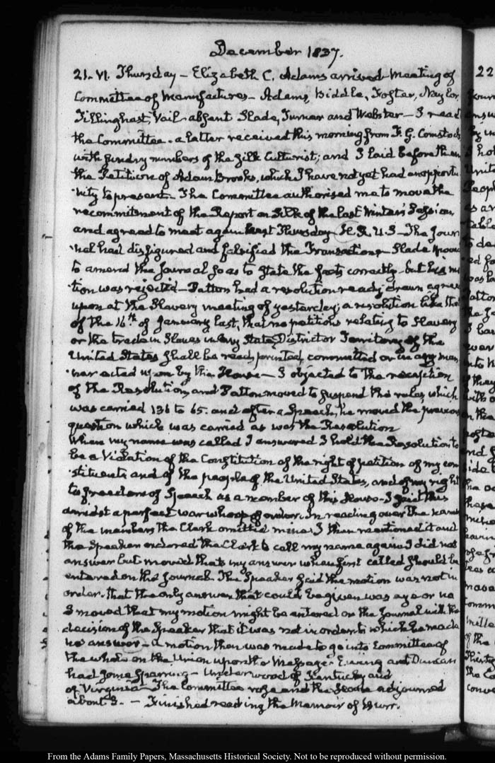 View full, authoritative transcriptions with page images of the diaries at John Quincy Adams Digital Diary part of the Primary Source Cooperative at the MHS.