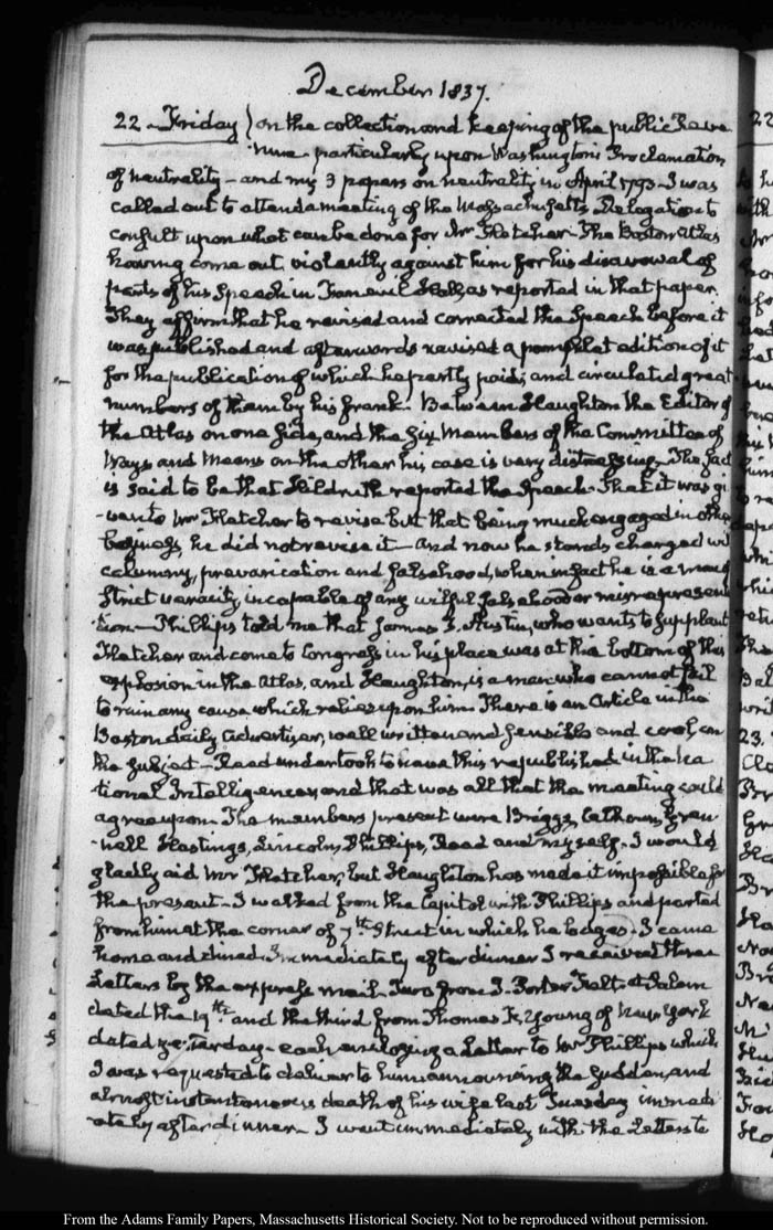 View full, authoritative transcriptions with page images of the diaries at John Quincy Adams Digital Diary part of the Primary Source Cooperative at the MHS.