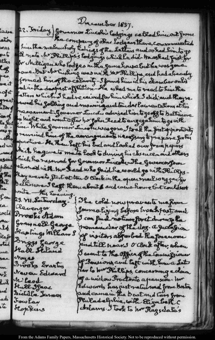 View full, authoritative transcriptions with page images of the diaries at John Quincy Adams Digital Diary part of the Primary Source Cooperative at the MHS.