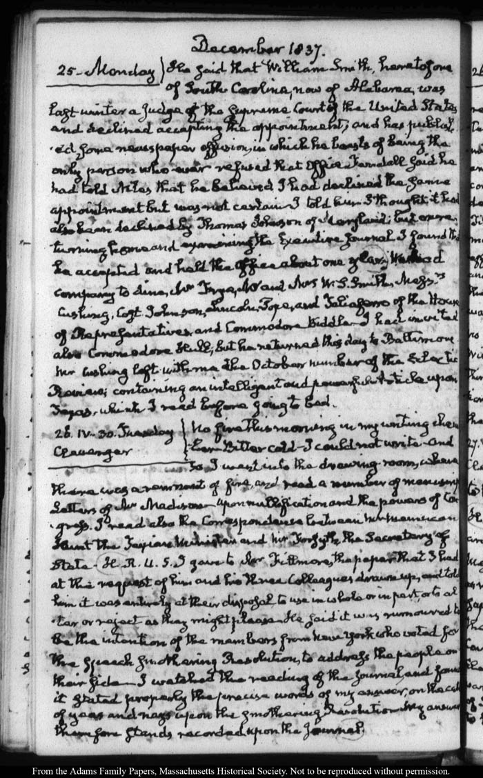 View full, authoritative transcriptions with page images of the diaries at John Quincy Adams Digital Diary part of the Primary Source Cooperative at the MHS.