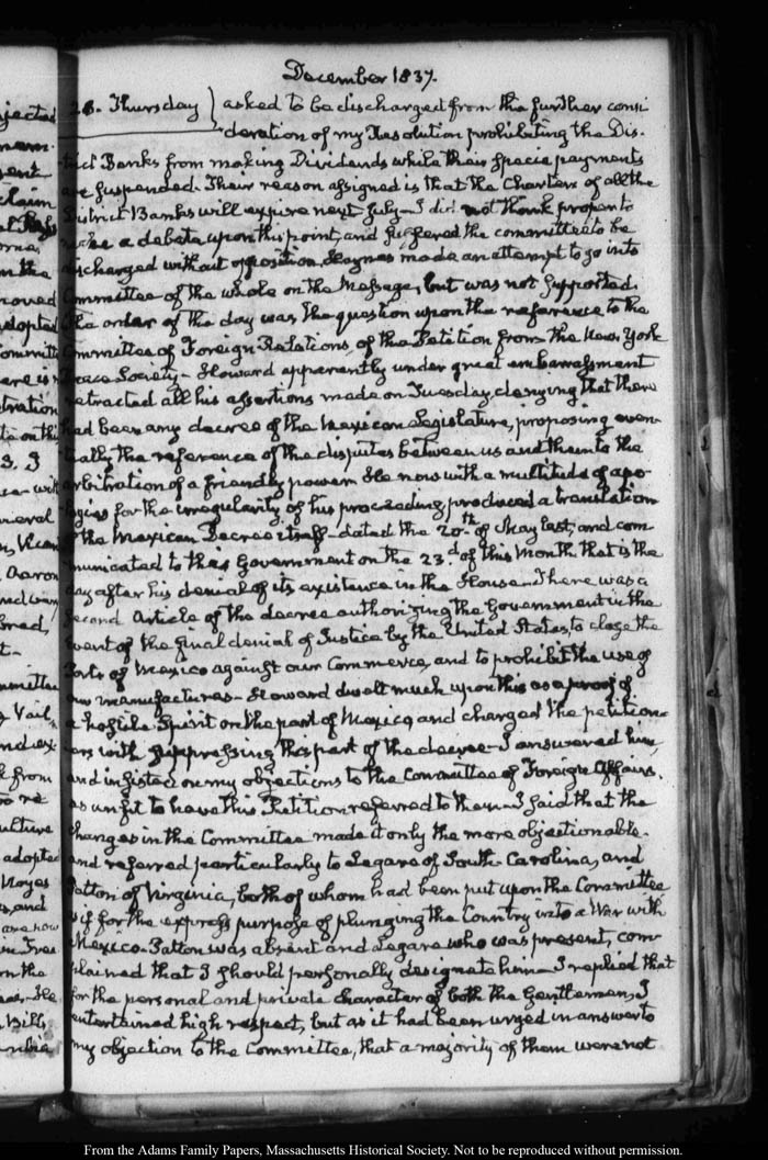View full, authoritative transcriptions with page images of the diaries at John Quincy Adams Digital Diary part of the Primary Source Cooperative at the MHS.