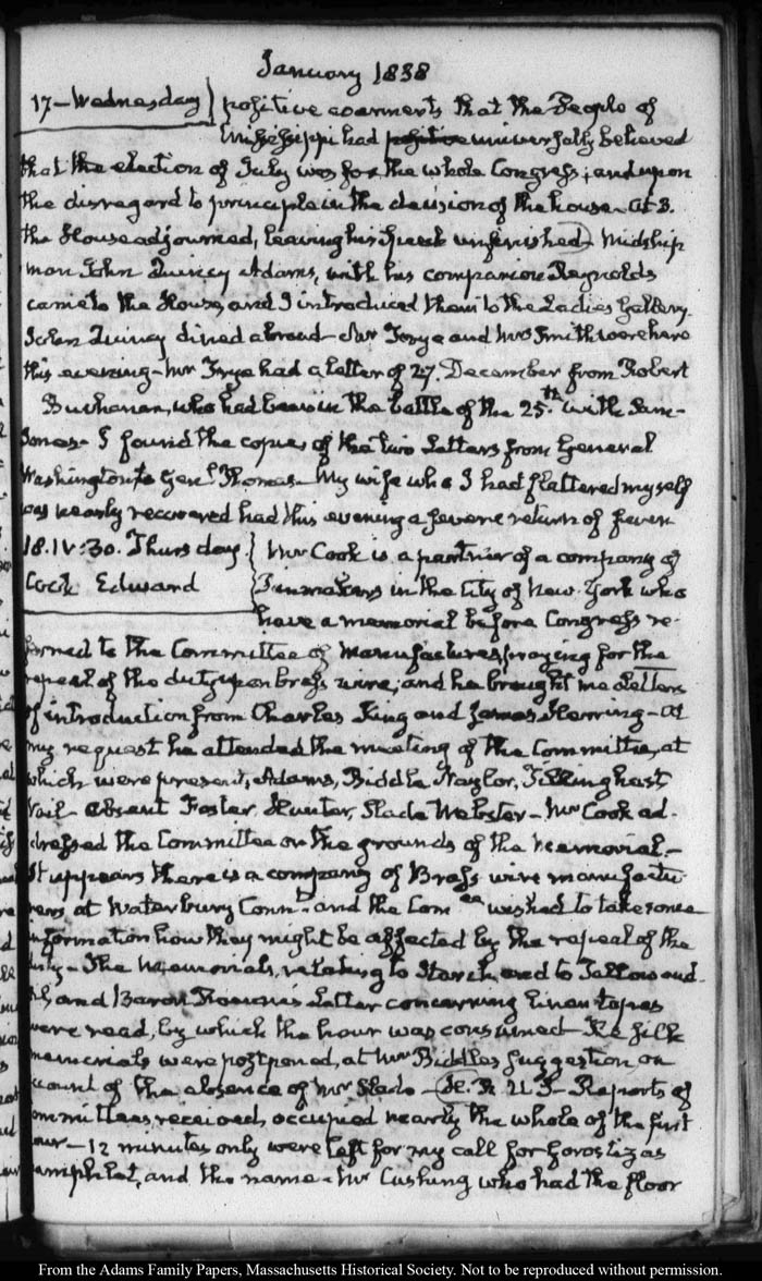 View full, authoritative transcriptions with page images of the diaries at John Quincy Adams Digital Diary part of the Primary Source Cooperative at the MHS.