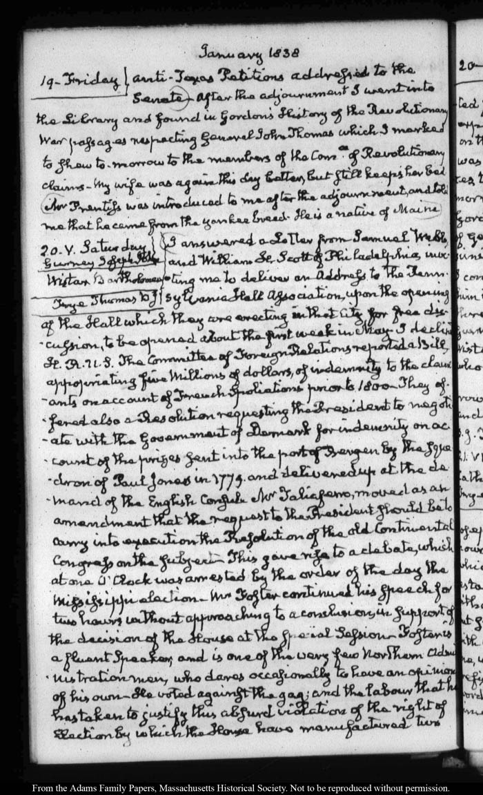 View full, authoritative transcriptions with page images of the diaries at John Quincy Adams Digital Diary part of the Primary Source Cooperative at the MHS.