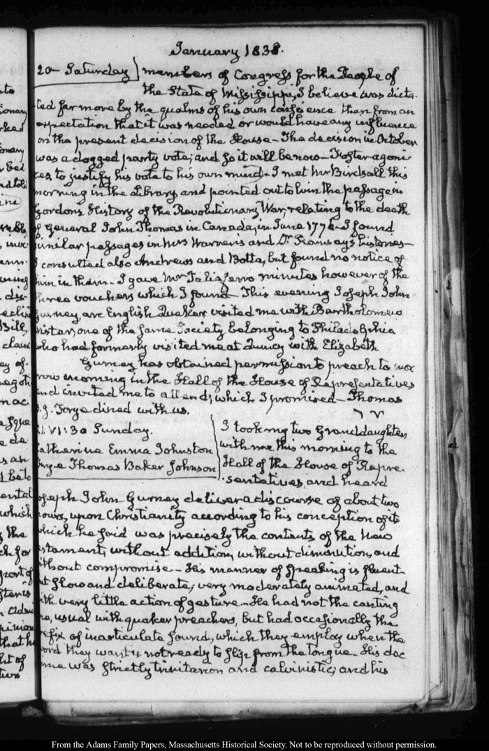 View full, authoritative transcriptions with page images of the diaries at John Quincy Adams Digital Diary part of the Primary Source Cooperative at the MHS.