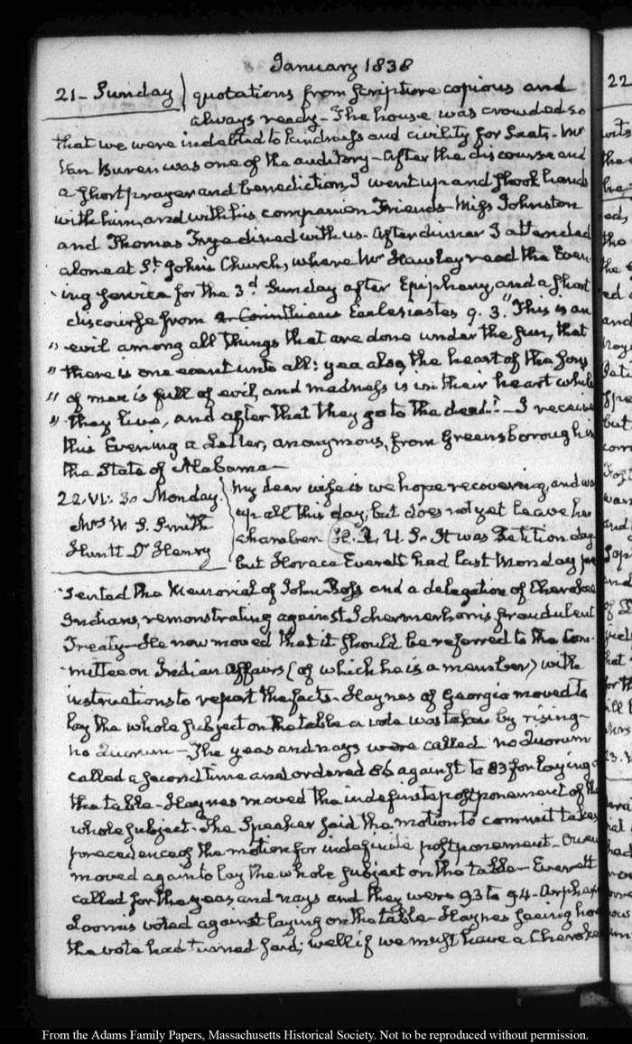 View full, authoritative transcriptions with page images of the diaries at John Quincy Adams Digital Diary part of the Primary Source Cooperative at the MHS.