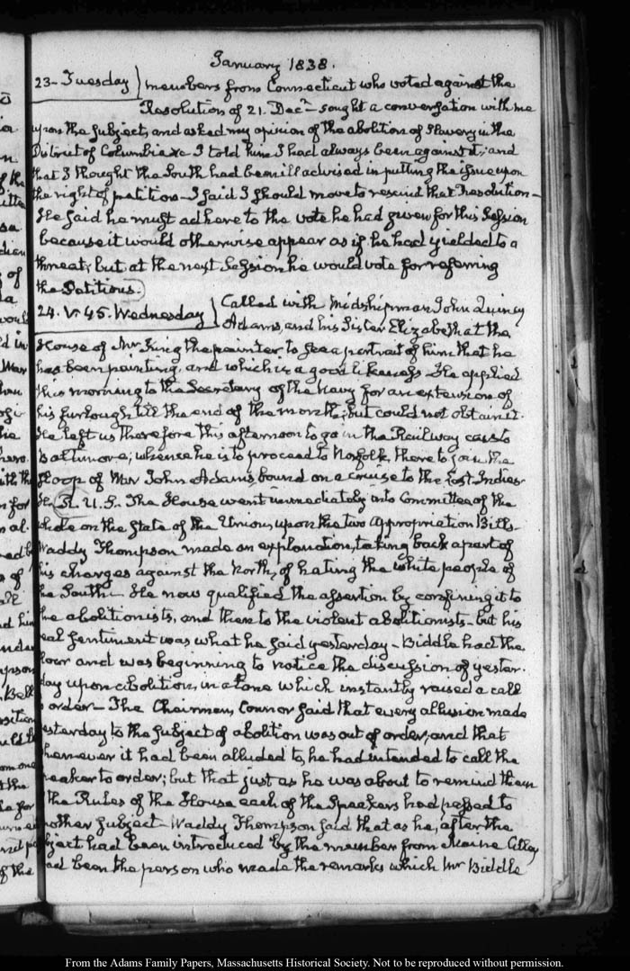 View full, authoritative transcriptions with page images of the diaries at John Quincy Adams Digital Diary part of the Primary Source Cooperative at the MHS.