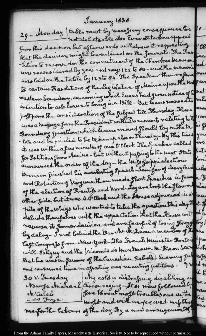 View full, authoritative transcriptions with page images of the diaries at John Quincy Adams Digital Diary part of the Primary Source Cooperative at the MHS.