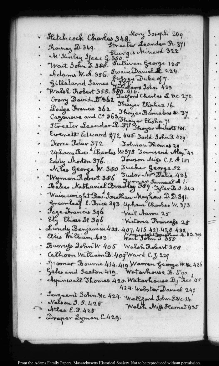 View full, authoritative transcriptions with page images of the diaries at John Quincy Adams Digital Diary part of the Primary Source Cooperative at the MHS.