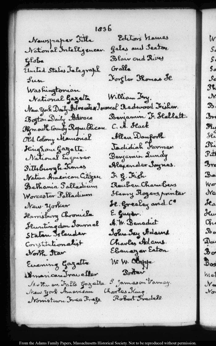 This is our legacy JQA diaries website and allows researchers to view the physical diaries page-by-page.