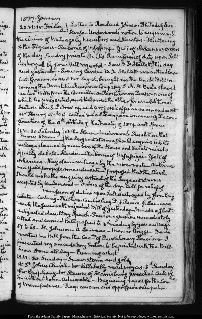 View full, authoritative transcriptions with page images of the diaries at John Quincy Adams Digital Diary part of the Primary Source Cooperative at the MHS.