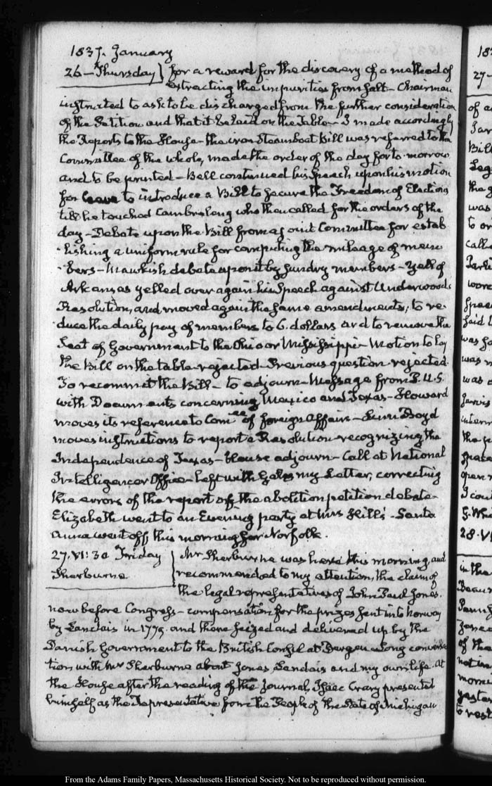View full, authoritative transcriptions with page images of the diaries at John Quincy Adams Digital Diary part of the Primary Source Cooperative at the MHS.