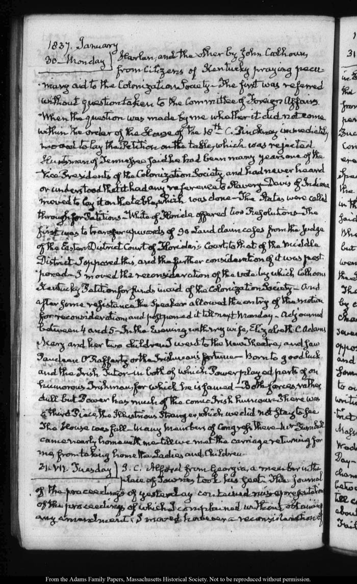 View full, authoritative transcriptions with page images of the diaries at John Quincy Adams Digital Diary part of the Primary Source Cooperative at the MHS.