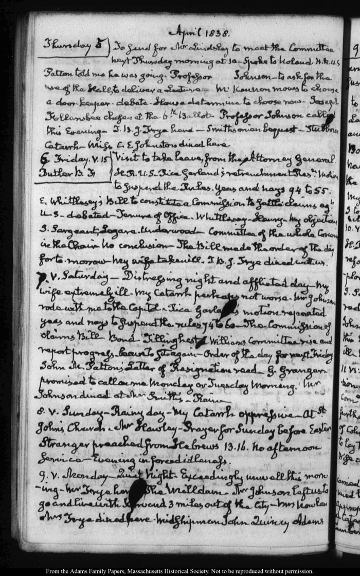 View full, authoritative transcriptions with page images of the diaries at John Quincy Adams Digital Diary part of the Primary Source Cooperative at the MHS.
