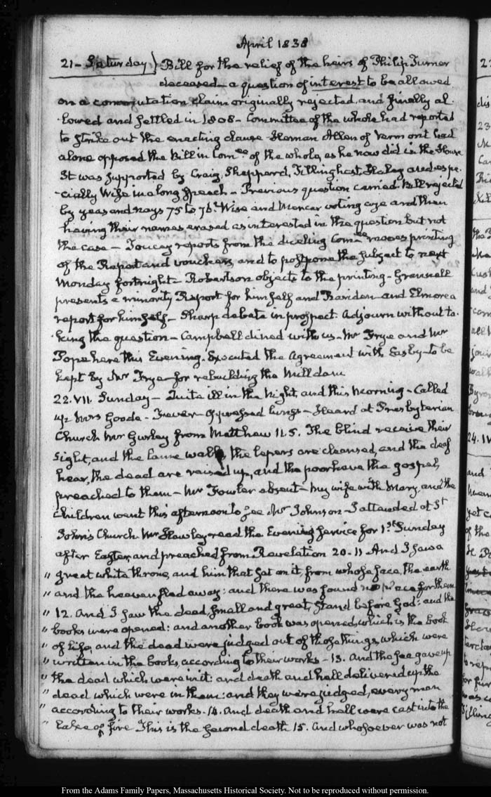 View full, authoritative transcriptions with page images of the diaries at John Quincy Adams Digital Diary part of the Primary Source Cooperative at the MHS.