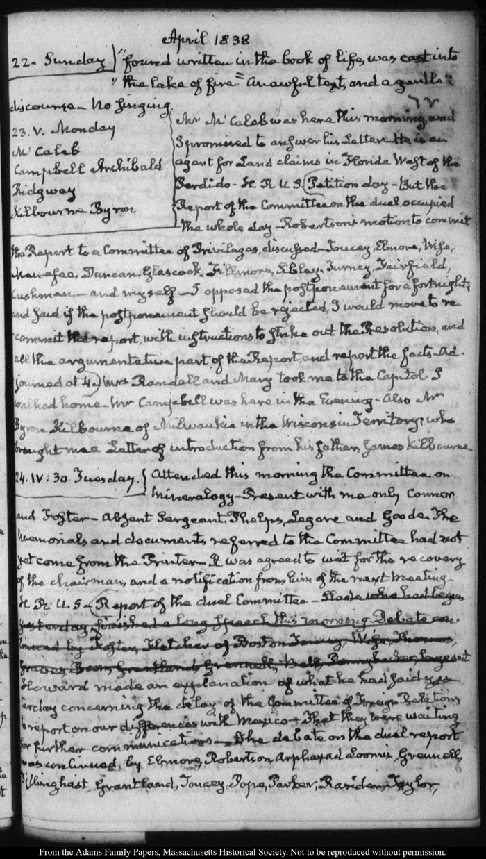 View full, authoritative transcriptions with page images of the diaries at John Quincy Adams Digital Diary part of the Primary Source Cooperative at the MHS.