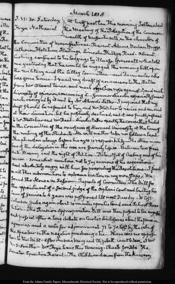 View full, authoritative transcriptions with page images of the diaries at John Quincy Adams Digital Diary part of the Primary Source Cooperative at the MHS.