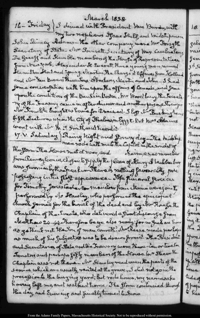 View full, authoritative transcriptions with page images of the diaries at John Quincy Adams Digital Diary part of the Primary Source Cooperative at the MHS.