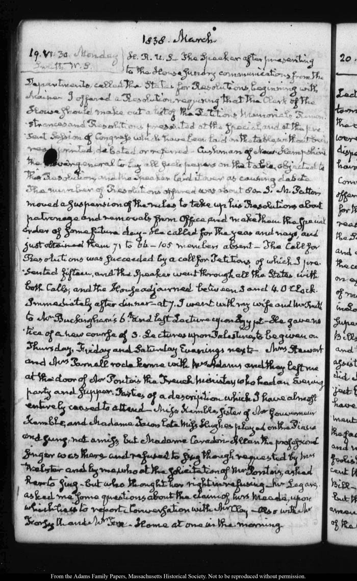 View full, authoritative transcriptions with page images of the diaries at John Quincy Adams Digital Diary part of the Primary Source Cooperative at the MHS.