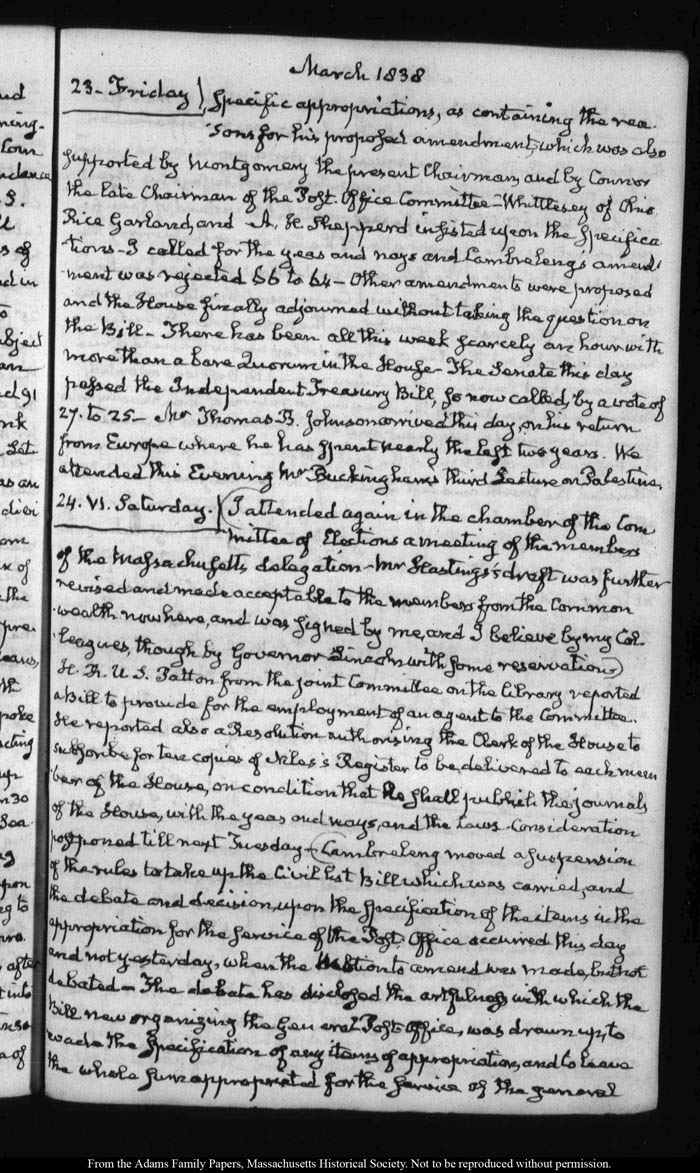 View full, authoritative transcriptions with page images of the diaries at John Quincy Adams Digital Diary part of the Primary Source Cooperative at the MHS.