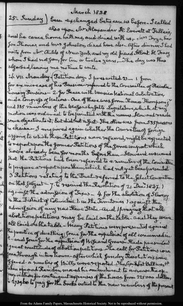 View full, authoritative transcriptions with page images of the diaries at John Quincy Adams Digital Diary part of the Primary Source Cooperative at the MHS.