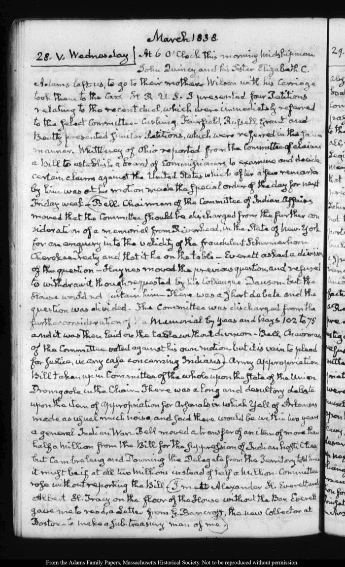 View full, authoritative transcriptions with page images of the diaries at John Quincy Adams Digital Diary part of the Primary Source Cooperative at the MHS.