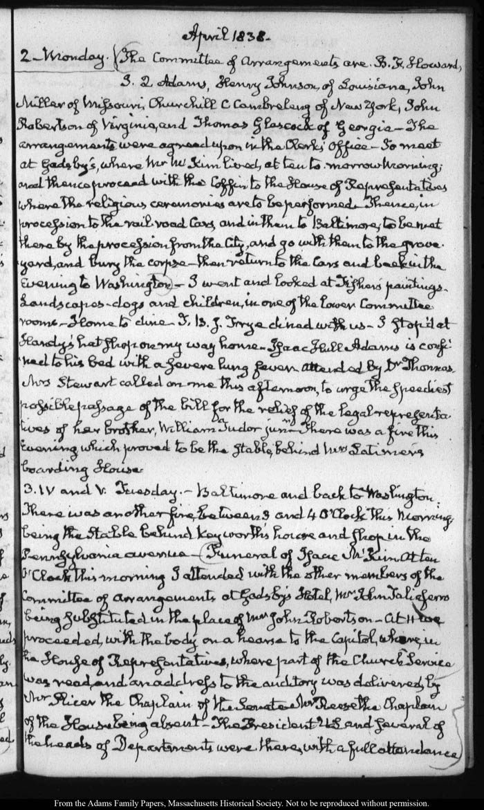 View full, authoritative transcriptions with page images of the diaries at John Quincy Adams Digital Diary part of the Primary Source Cooperative at the MHS.